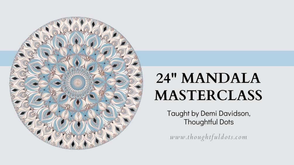 I am so excited to bring you another Thoughtful Dots Masterclass. If you have been a student of mine for a while or have completed any of my YouTube, Patreon or past Masterclass courses, then you will be ready for this 24" Mandala Masterclass. In this class I will walk you through step-by-step and show you how to create this beautiful mandala from start to finish.