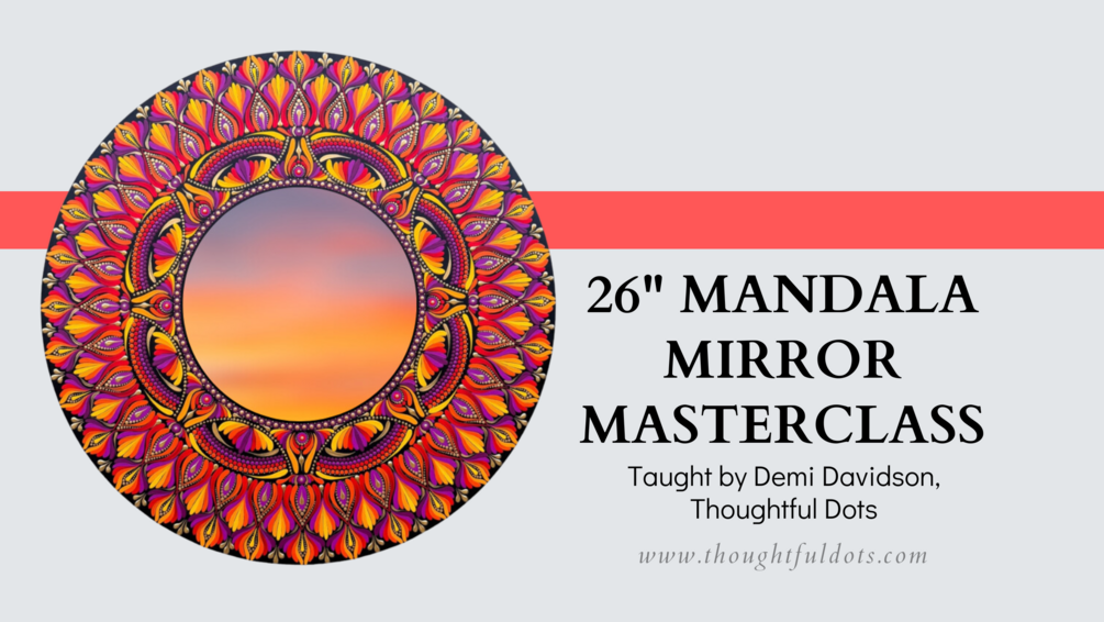 I am so excited to bring you another Thoughtful Dots Masterclass. If you have been a student of mine for a while or have completed any of my YouTube, Patreon or past Masterclass courses, then you will be ready for this 26" Mandala Mirror Masterclass. In this class I will walk you through step-by-step and show you how to create this beautiful mandala from start to finish.